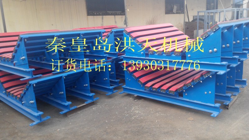緩沖床主要用于替代緩沖托輥,緩沖床由緩沖條組成,而緩沖條主要應用優(yōu)良的高彈性特種橡膠層充分有效吸收了物料下落時的沖擊力,大大降低了物料下落時對輸送帶的沖擊,真正的改善了落料點的受力狀況。并采用特殊的UHMW高分子聚乙烯表面,使輸送帶與緩沖條之間的摩擦系數(shù)降到最低,且耐磨性好。緩沖床的使用保證了輸送帶的面與面的接觸,受力均勻,有效防止了由于托輥斷裂、脫落造成的皮帶縱向撕裂,同時大大降低了皮帶被銳器或尖銳物料穿透后縱向撕裂的概率。